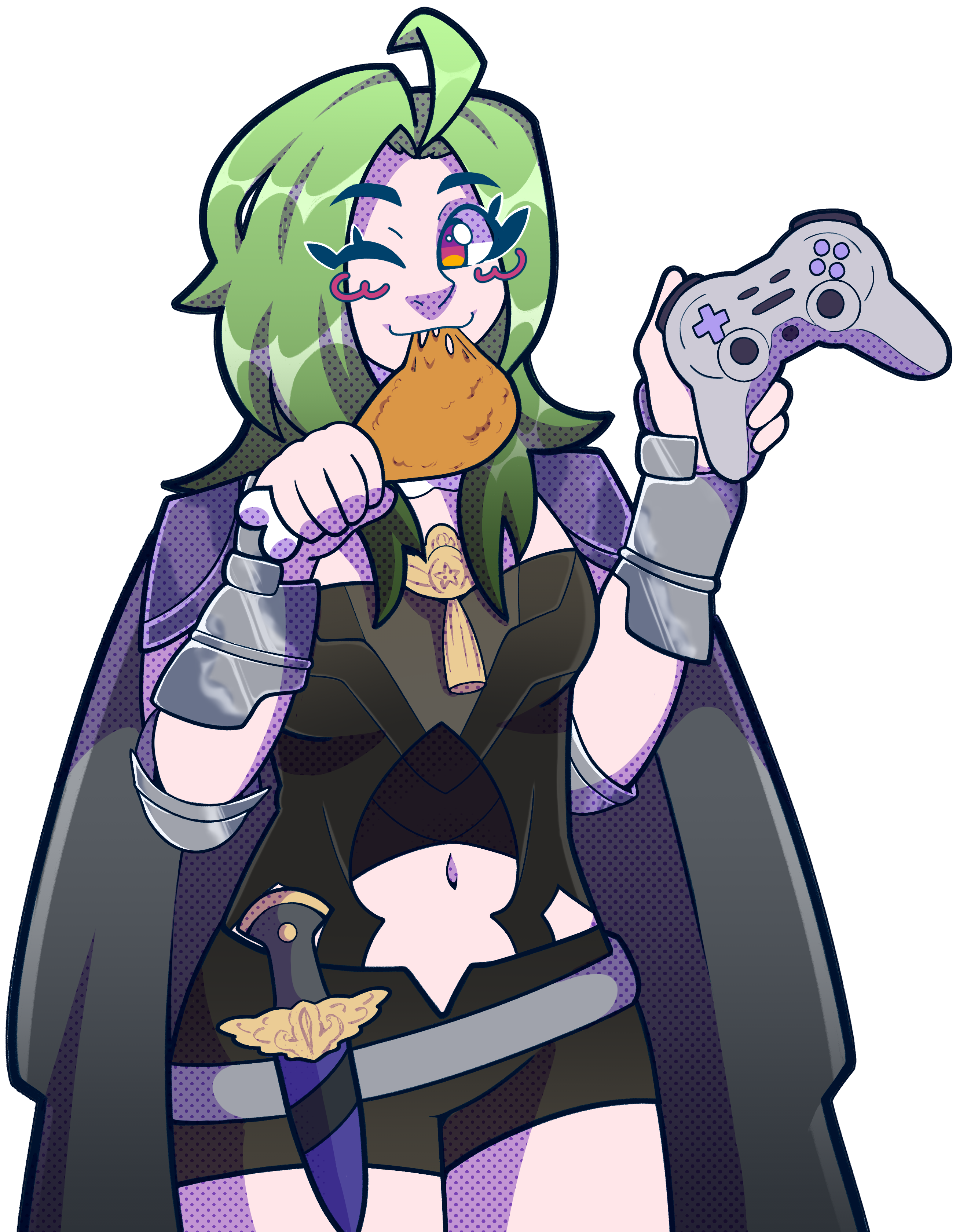 includes up to three full body drawings a character + a chibi or emote with a simple background. Great way to explore different poses or aesthetics for a character. Character complexity and outfit variation may affect price.