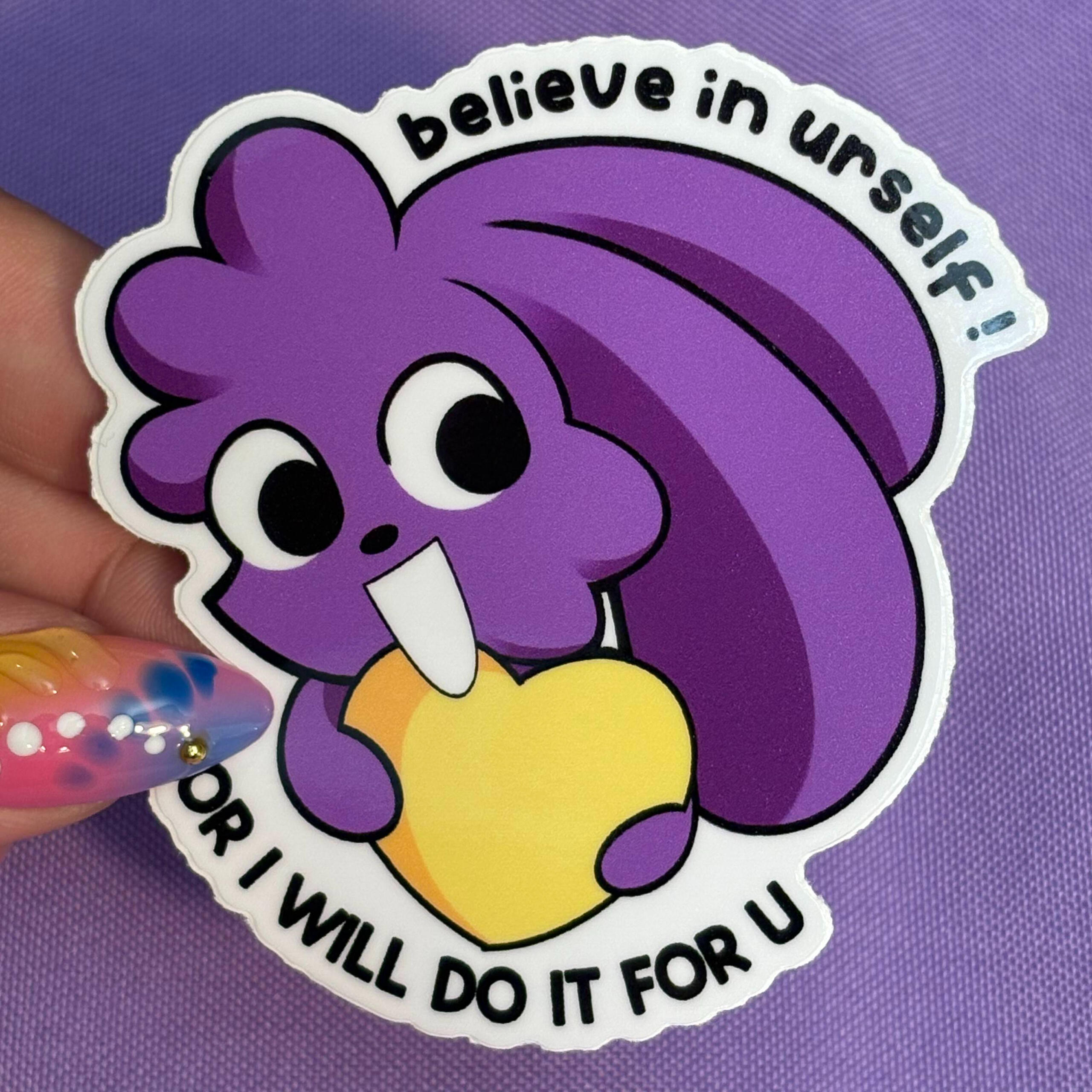 simplified small character drawing stylized to look like a sticker! Can include an item for character to hold. You receive transparent .png & solid color background version